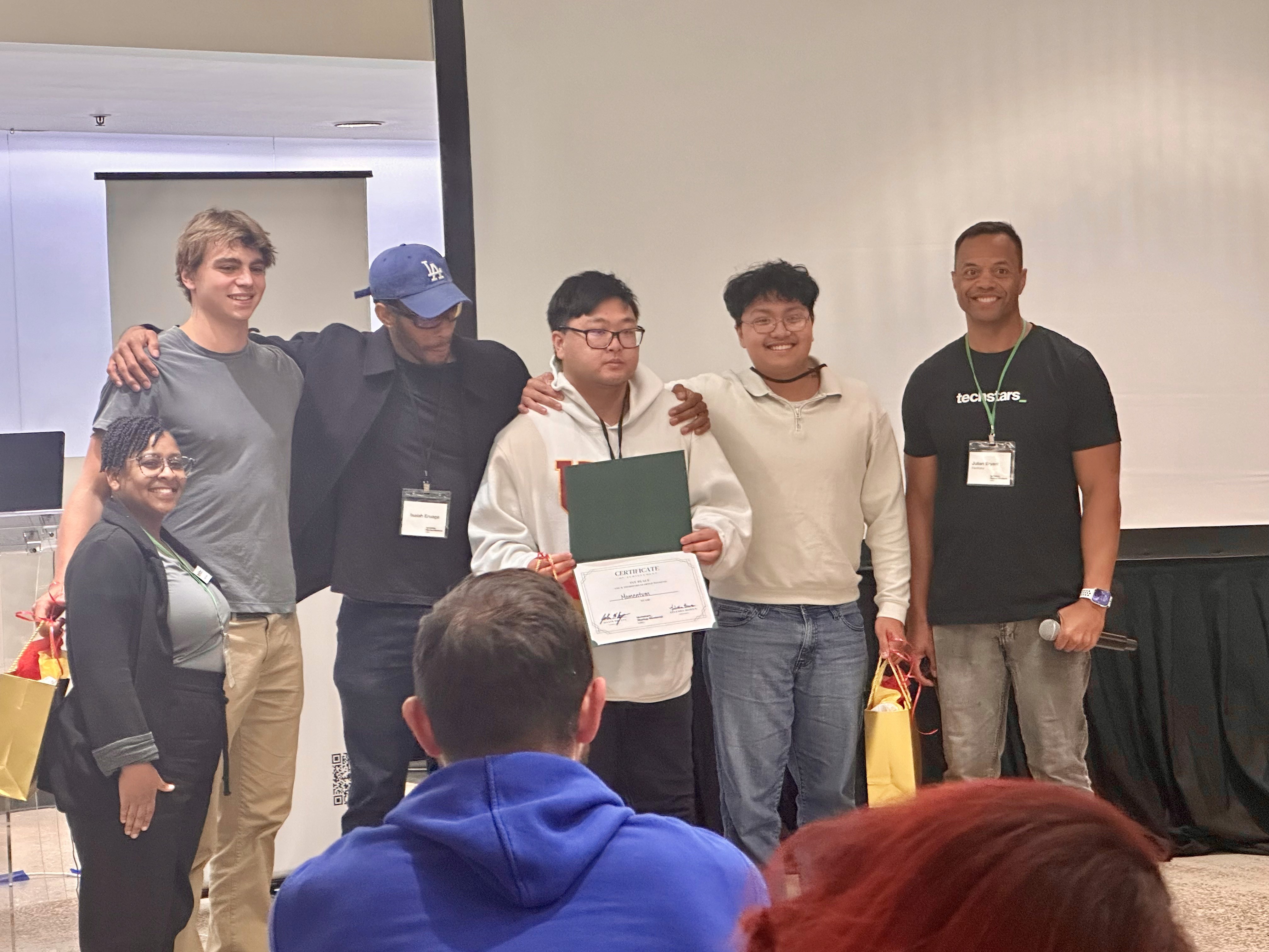 Our final pitch at the end of the weekend won first place out of ten teams, earning us an interview for the Techstars Accelerator program.