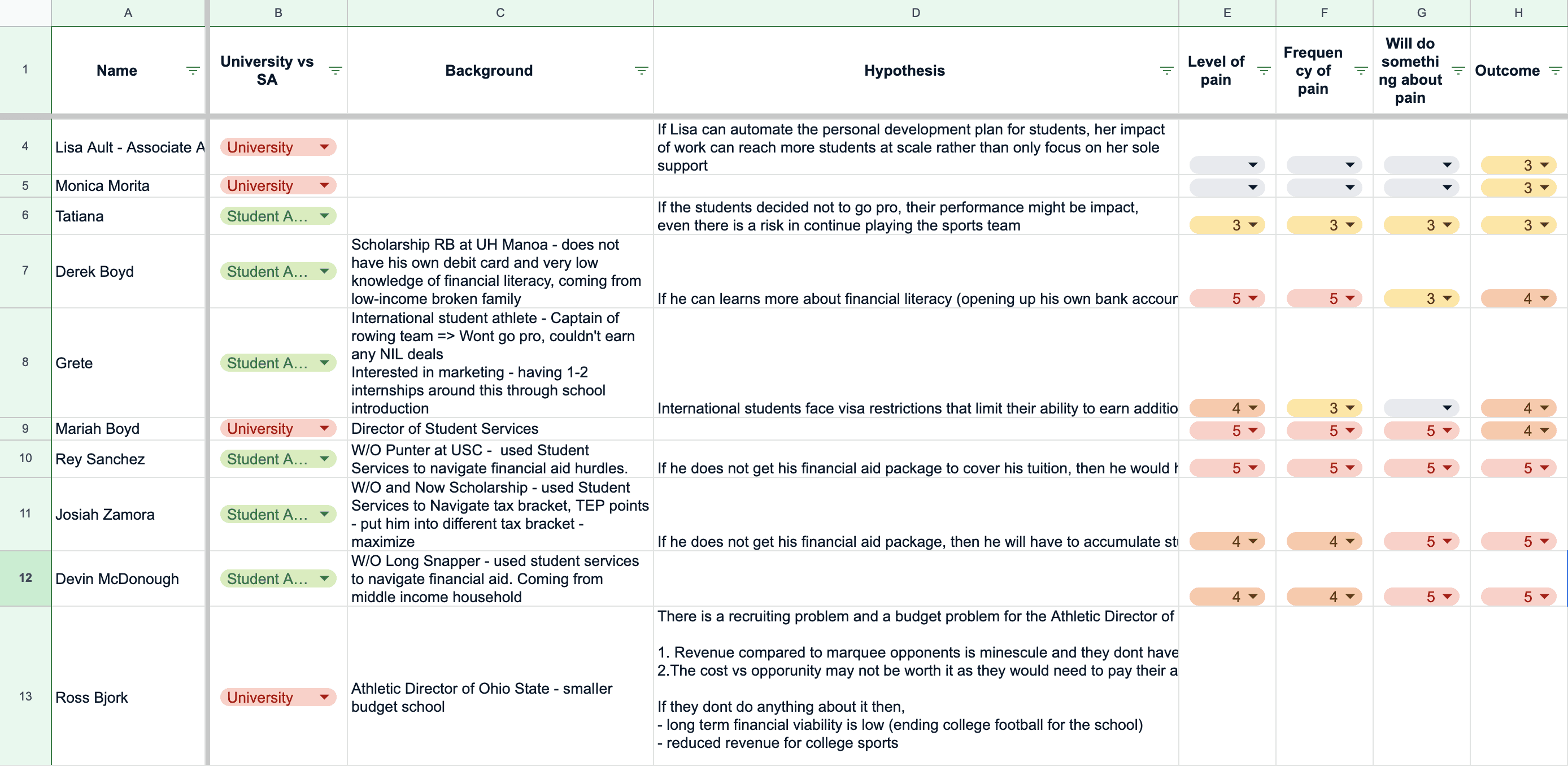 With this direction, we conducted thorough market and user research, talking to 50+ student athletes along with athletic directors and professionals in the space