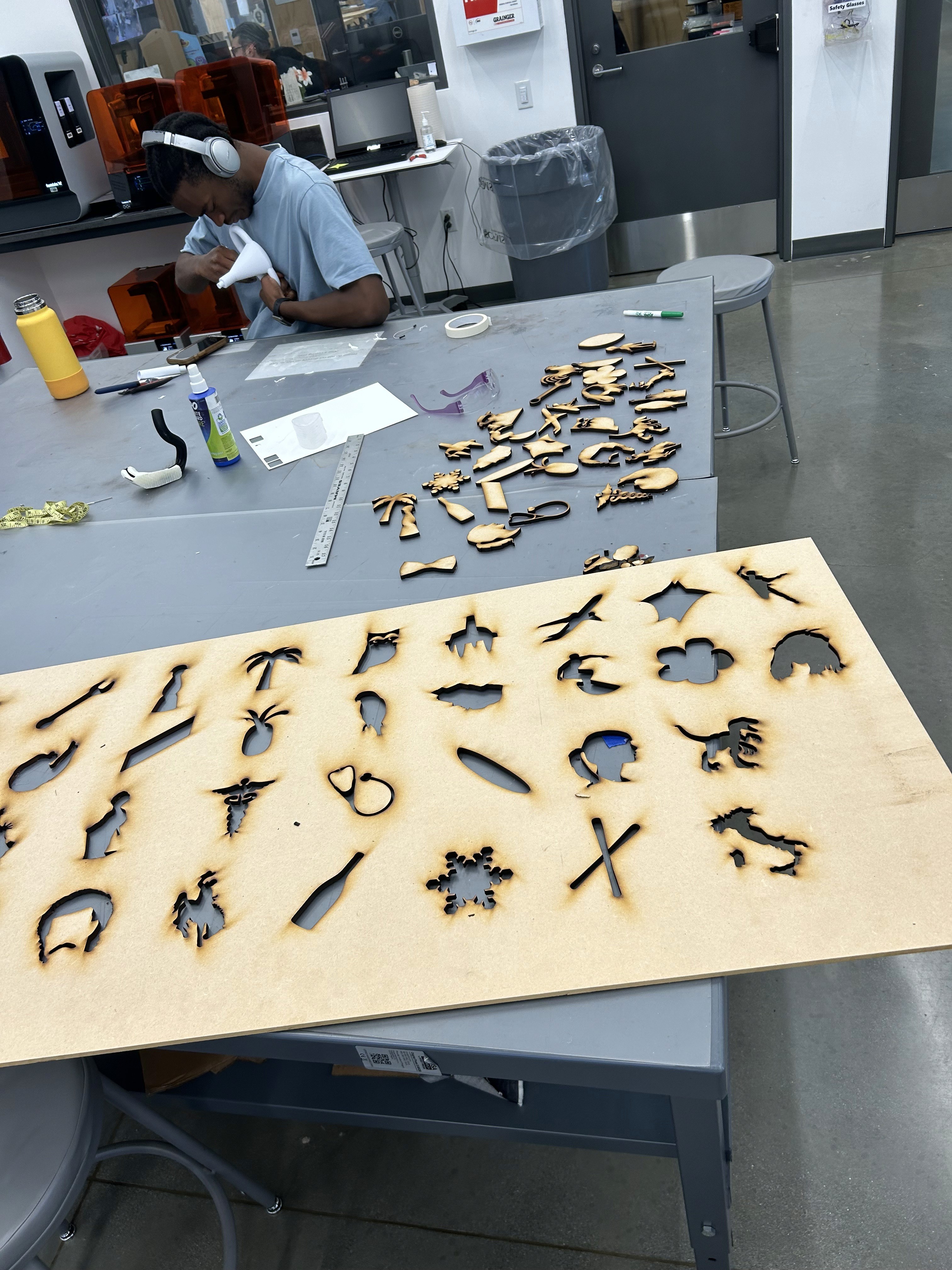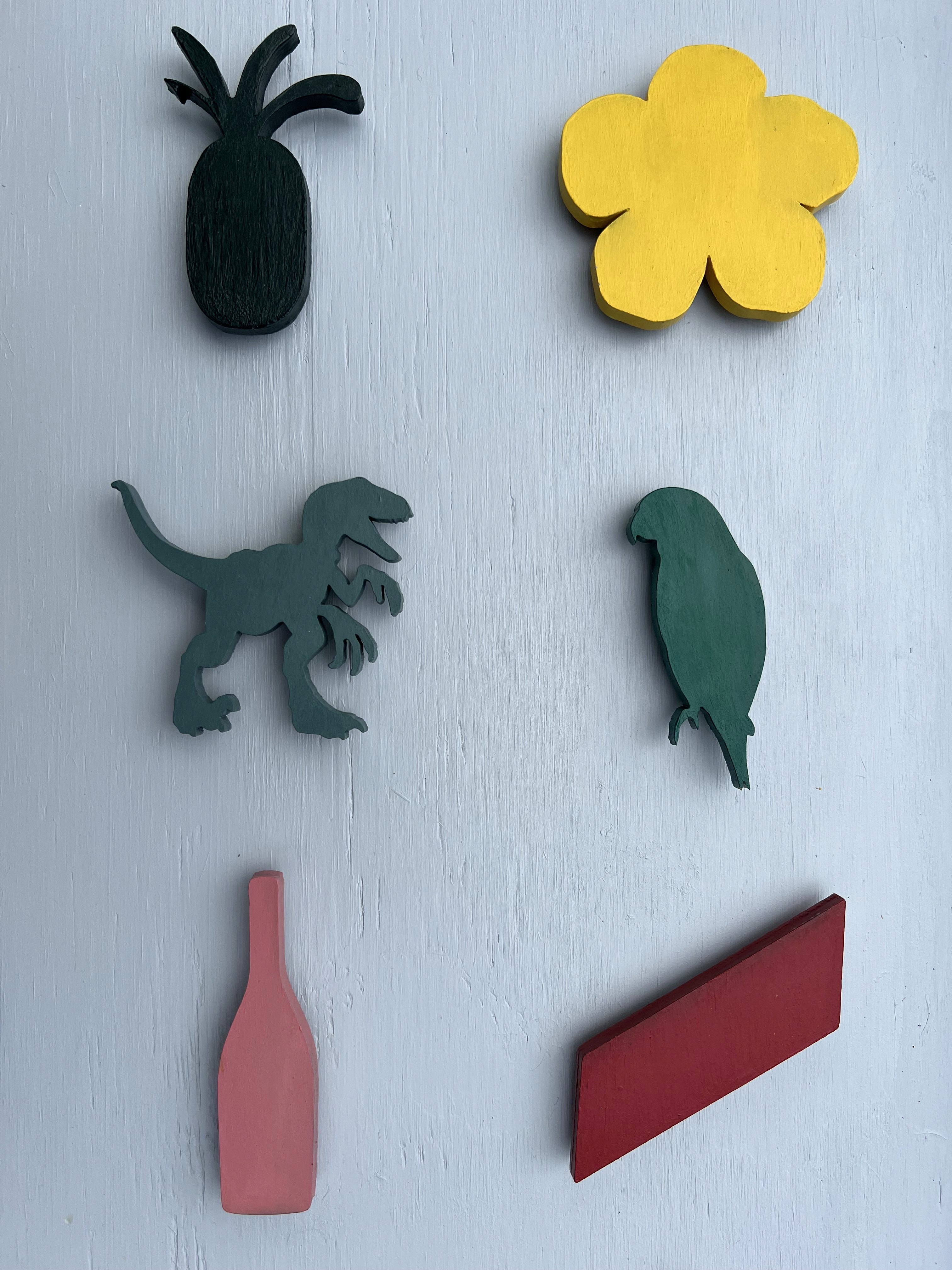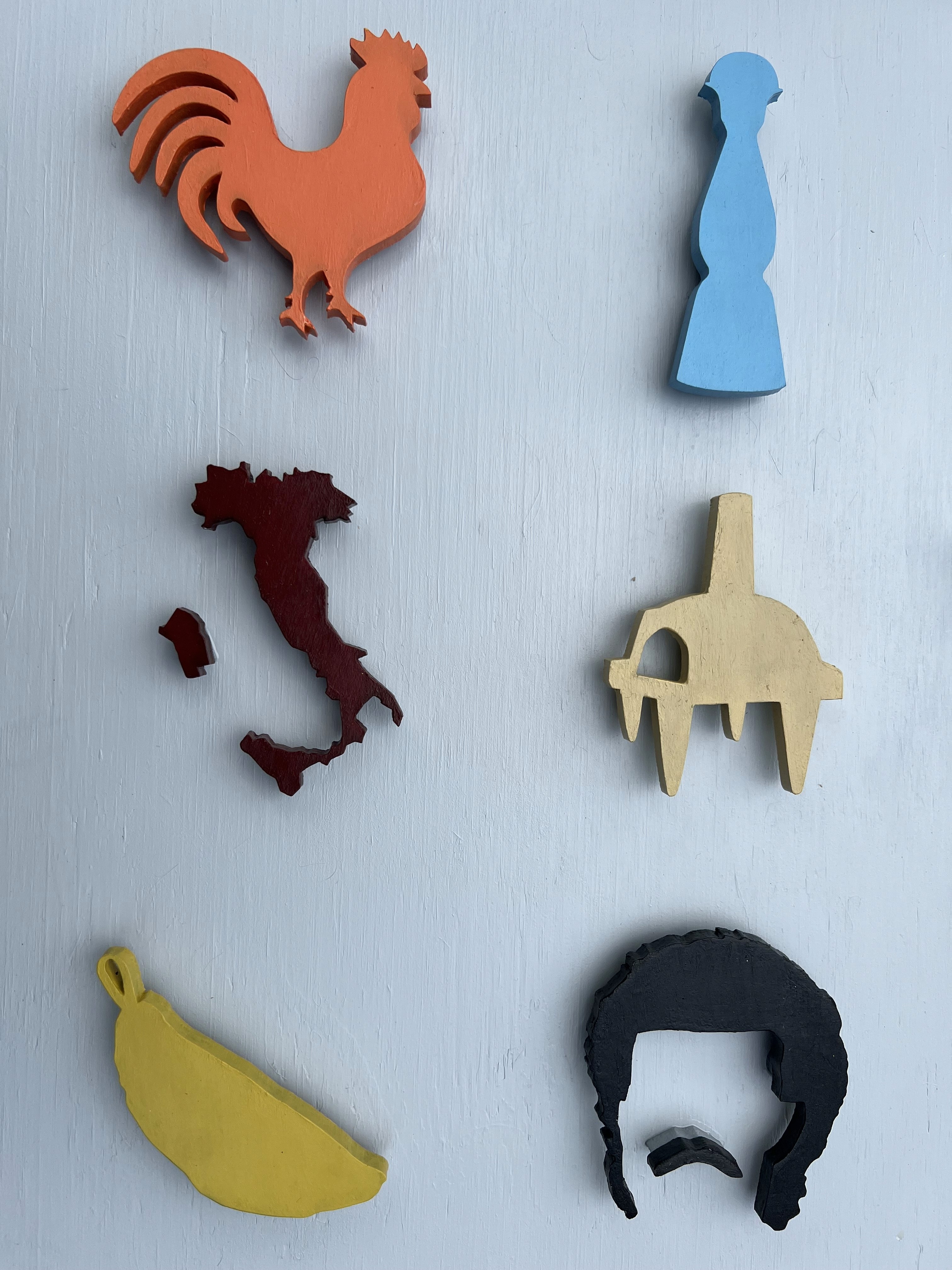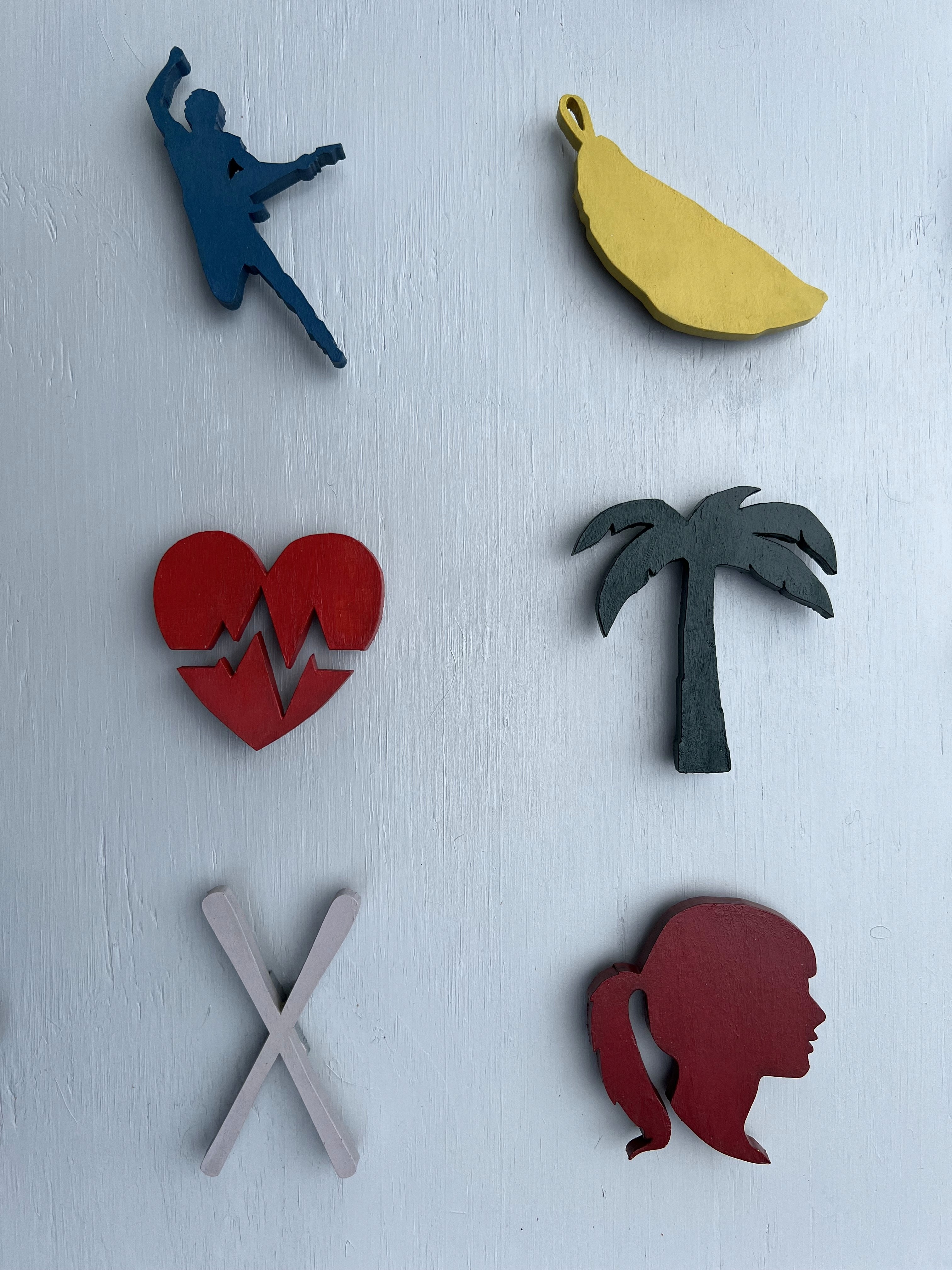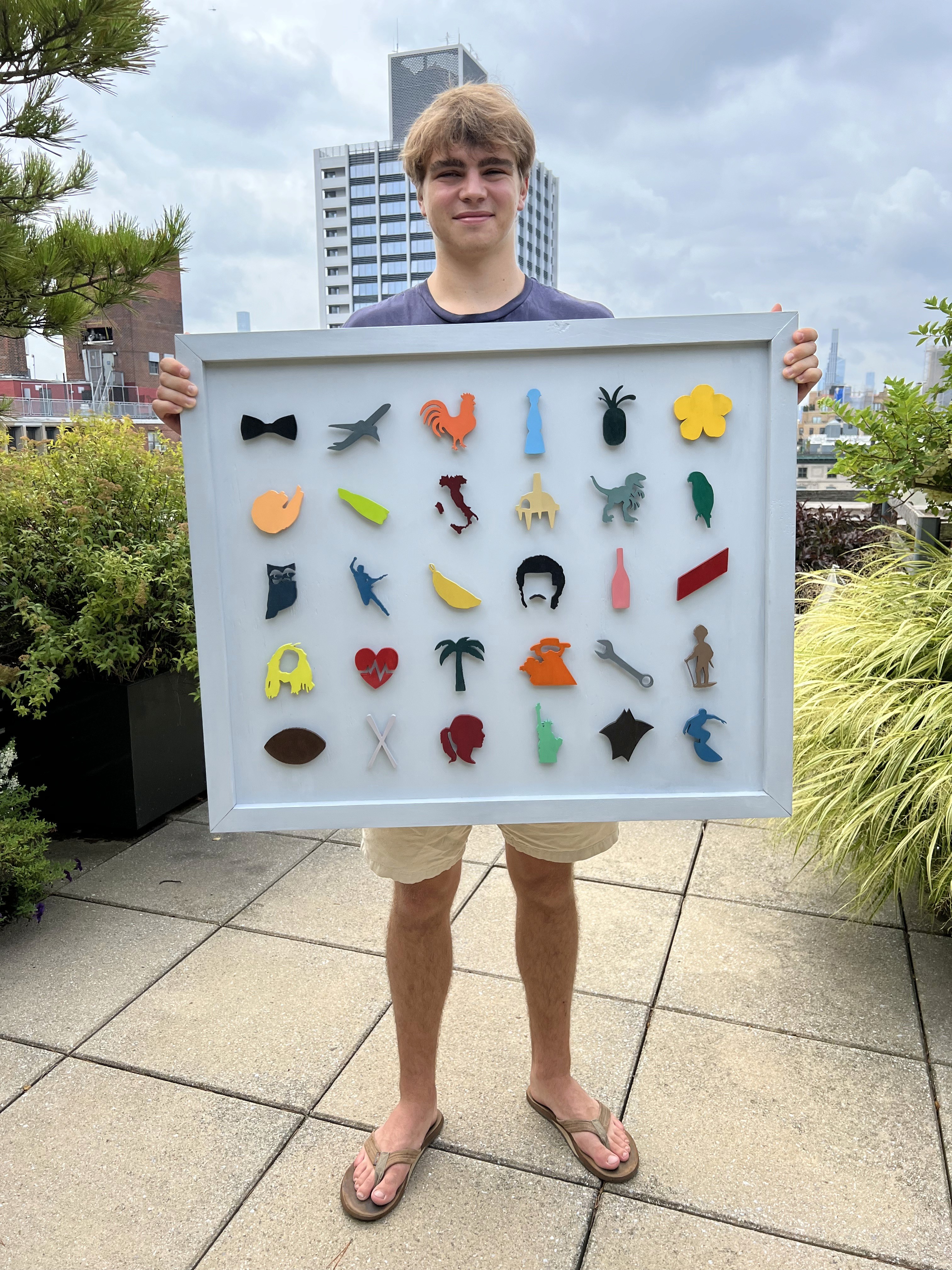 I was commissioned to create this piece as a gift from one family to another, celebrating their long-standing friendship. The artwork features a collection of symbols that represent memories and inside jokes shared between the two families. The composition and color palette draw inspiration from Damien Hirst's iconic dot works, but each element is laser-cut from wood and mounted on a wooden frame to create an elevated look.