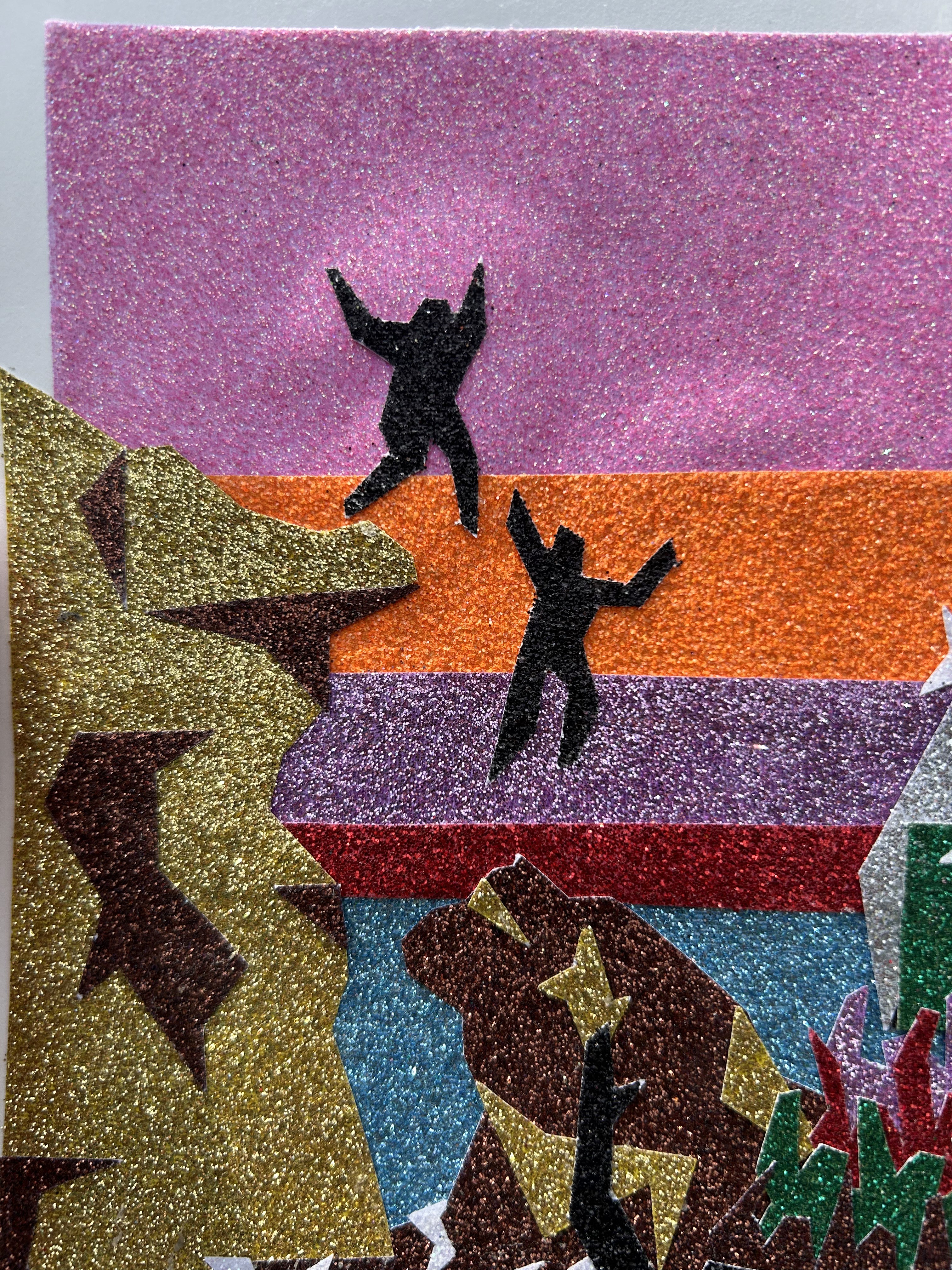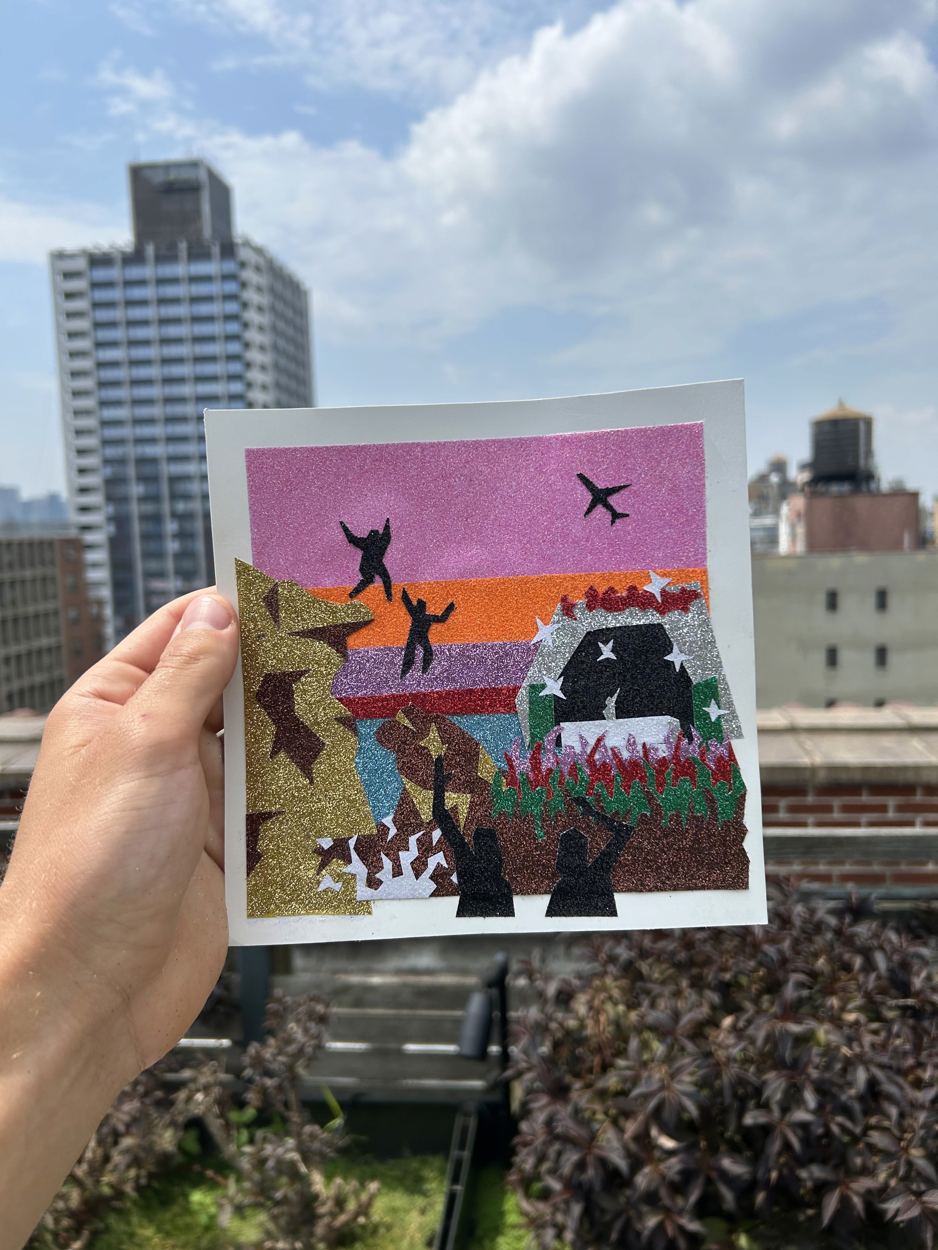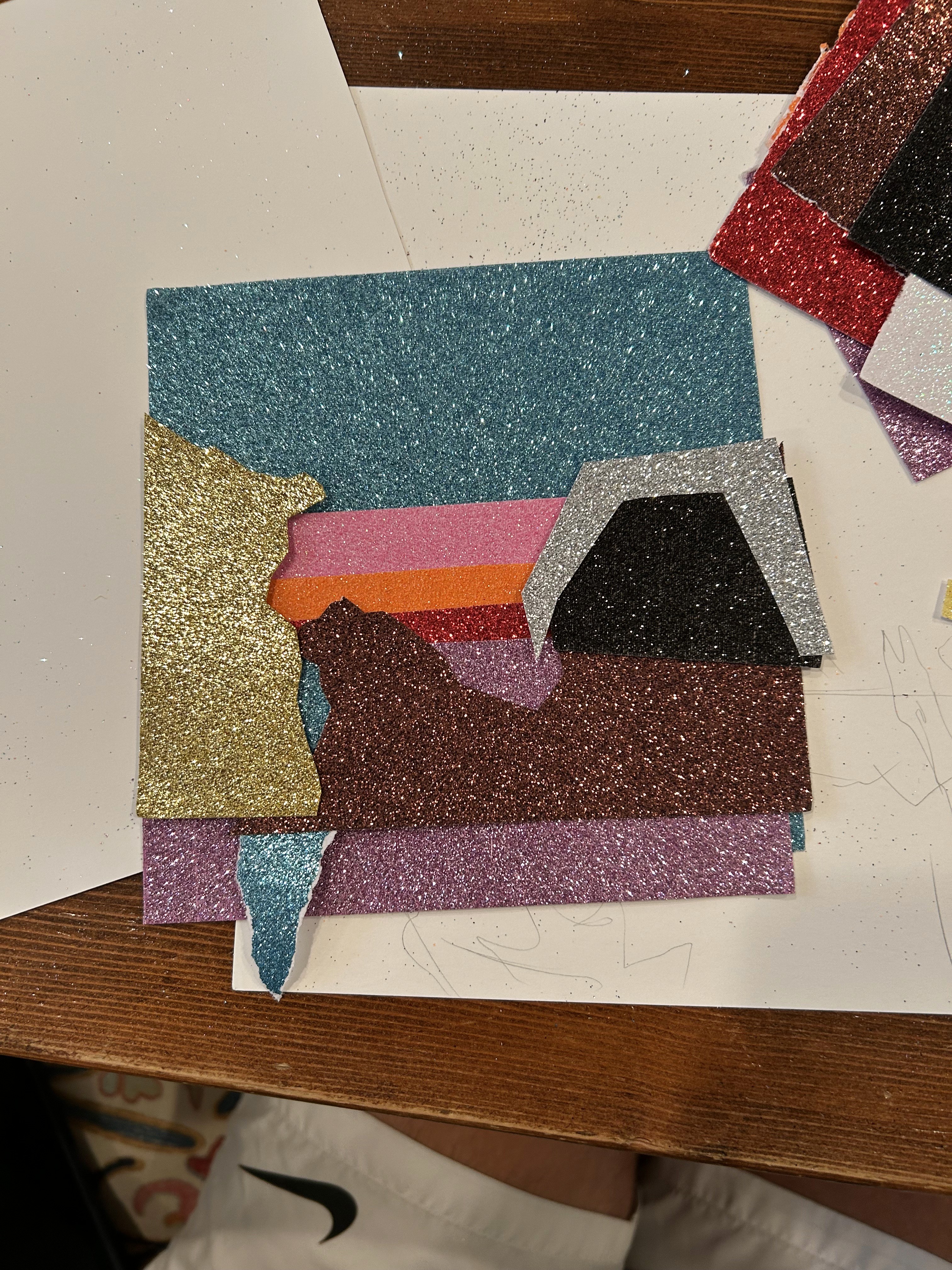 After my friend's family invited me to stay with them for a week in Ibiza, I wanted to show my appreciation with an artwork that captured our experience there. The sharp edges represent the jagged cliffs that the island features, and the glittery colors show the wild extravagance that Ibiza is famous for.