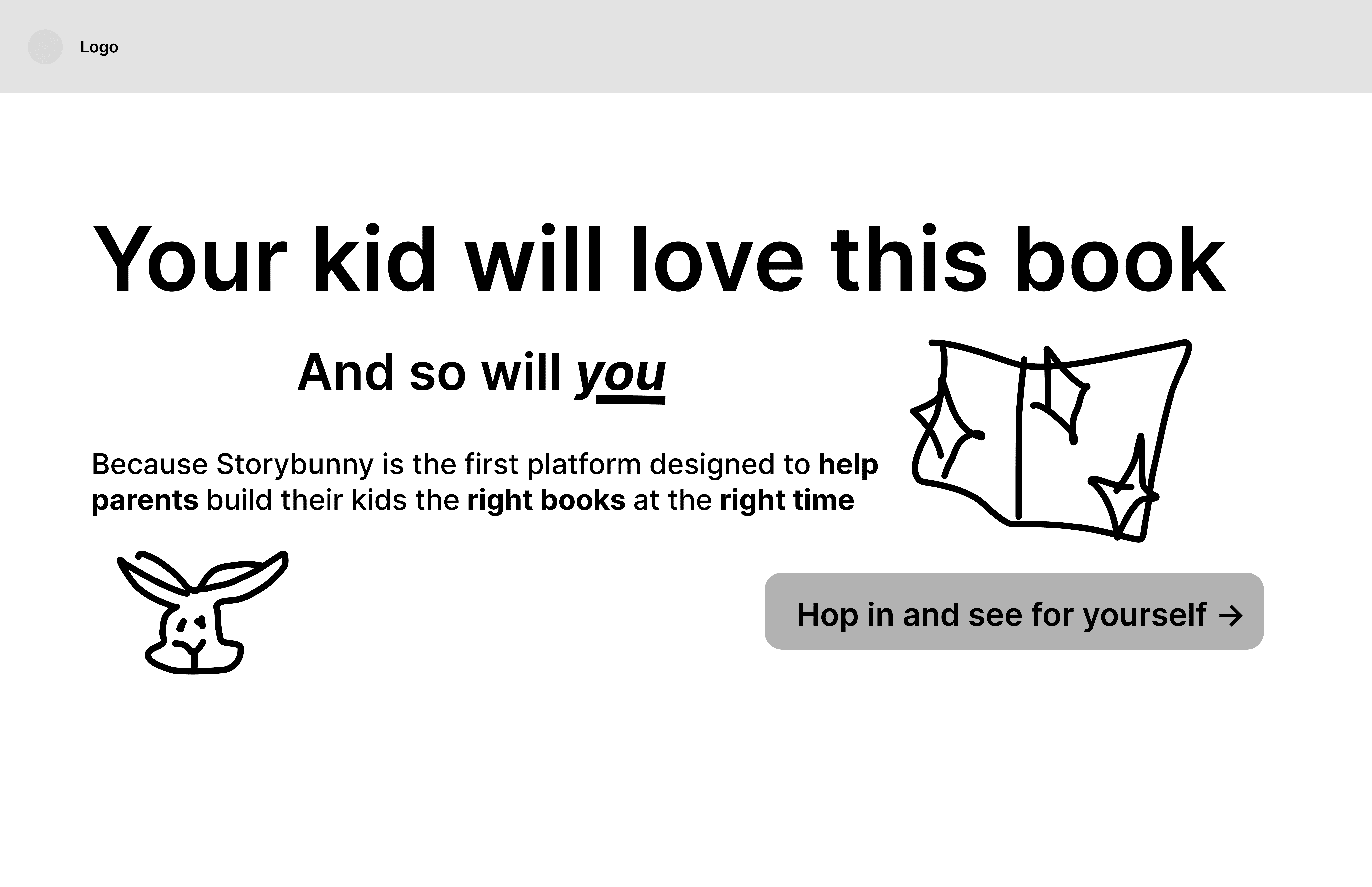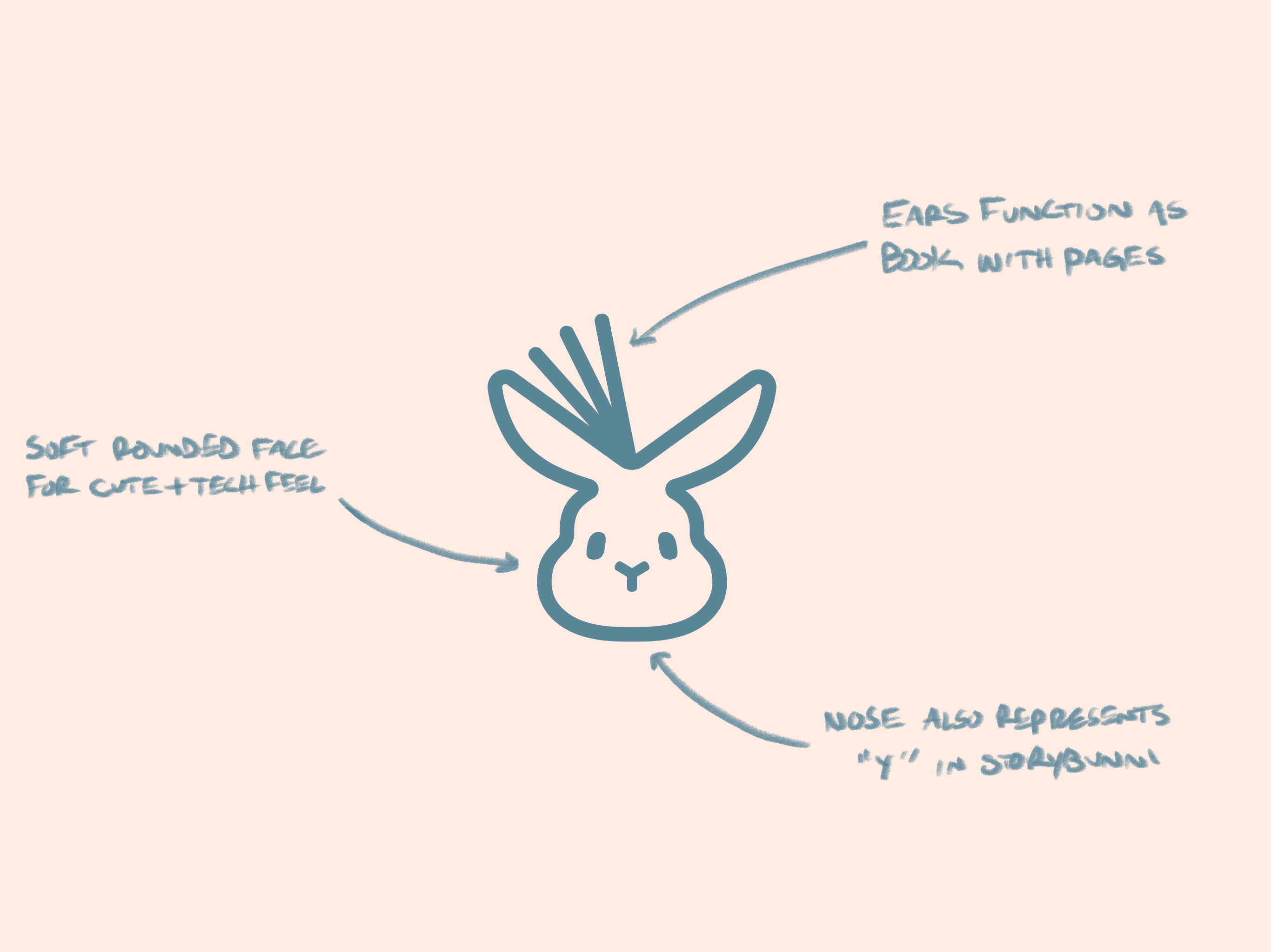 My goal was to create a logo that found the balance between looking cute and welcoming but also representing the technical capabilities of the product. The pages in the ears helped achieve this feel by showing the motion of the book being created by Storybunny's AI