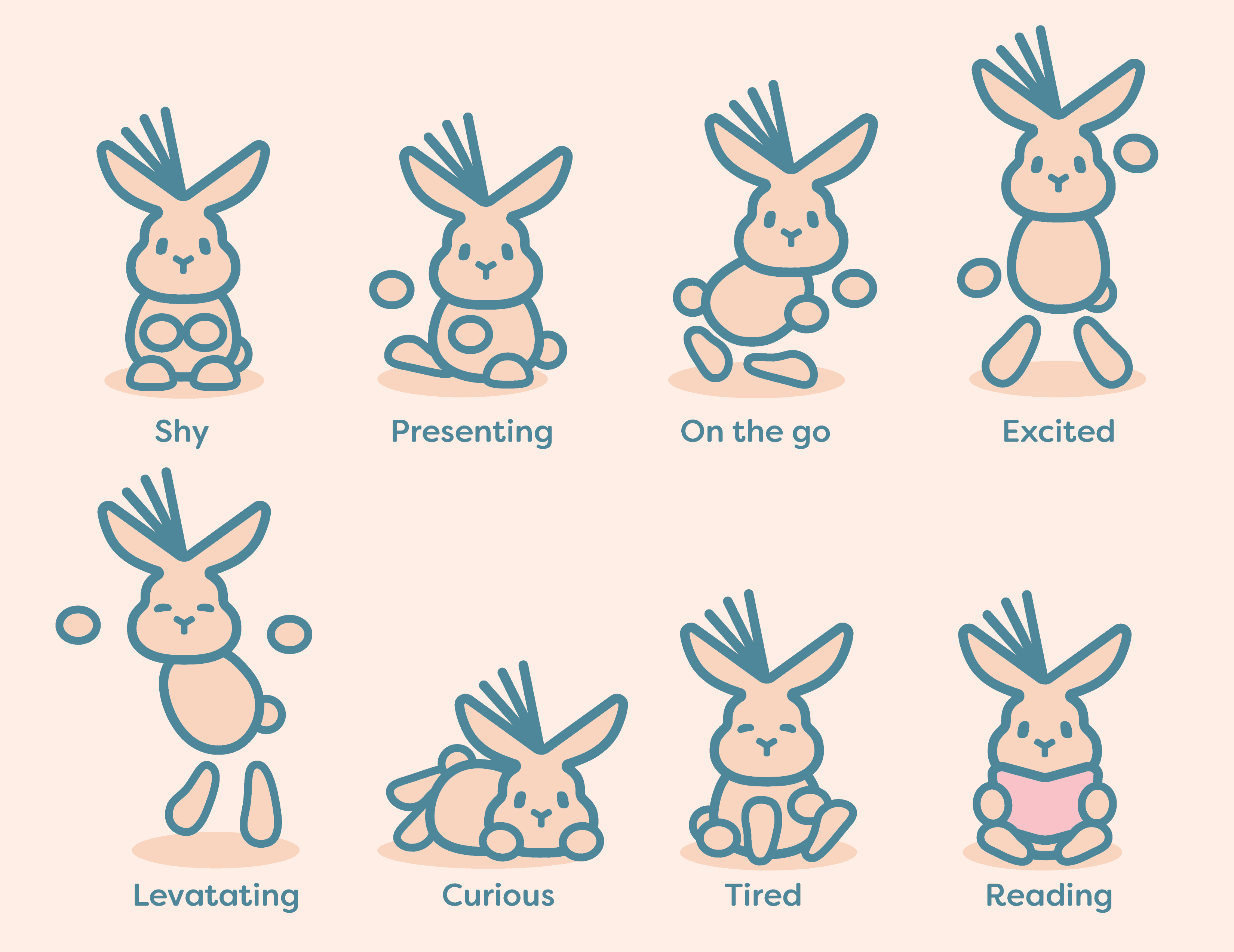 To supplement the logo and make the product more fun and interesting, I created character and made a collection of its 8 different states