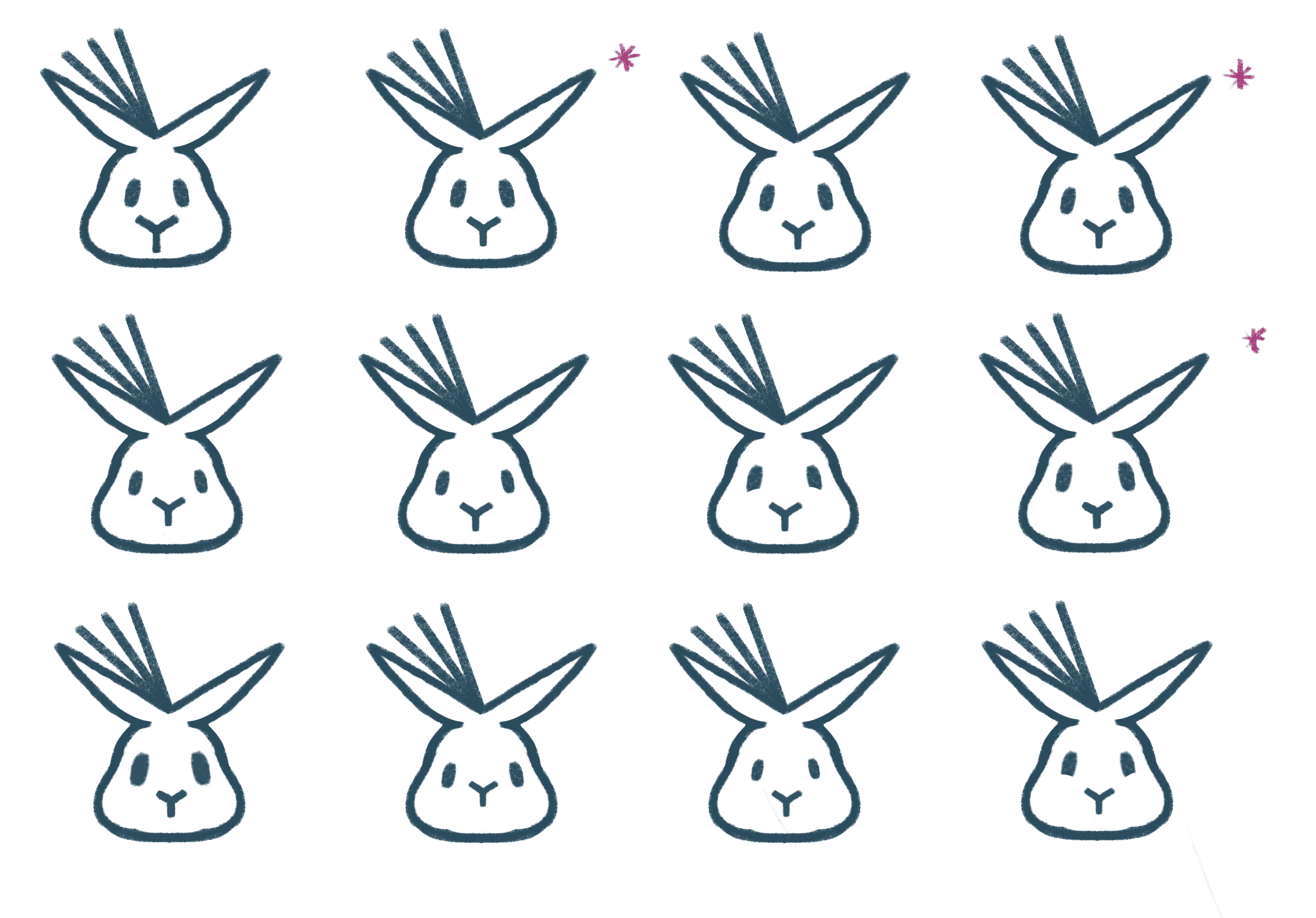 We decided to go with the bunny, but my boss felt that it looked too cold and expressionless, so I sketched up many variations of the face to get the right amount of cuteness